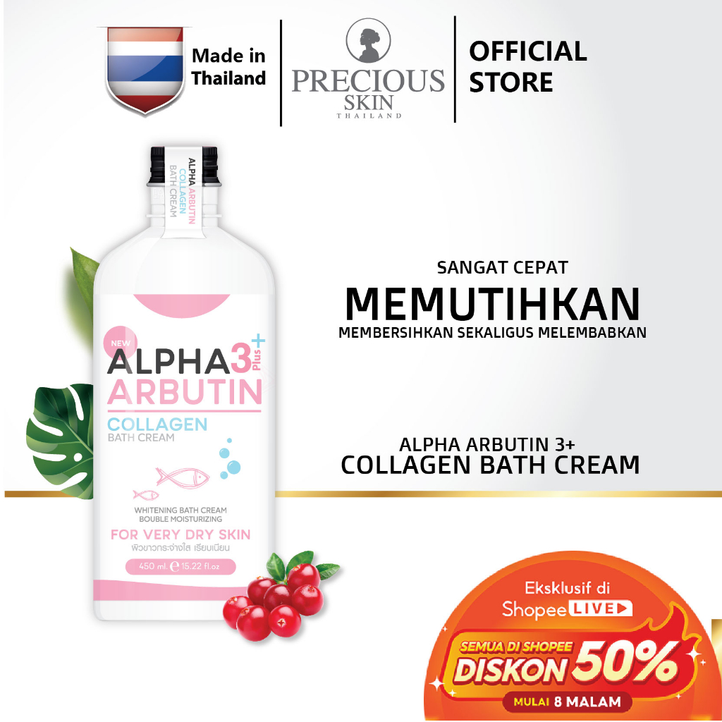 Precious Skin Thailand Alpha Arbutin 3 Plus Whitening Collagen Bath Cream Sabun Cair 350ml