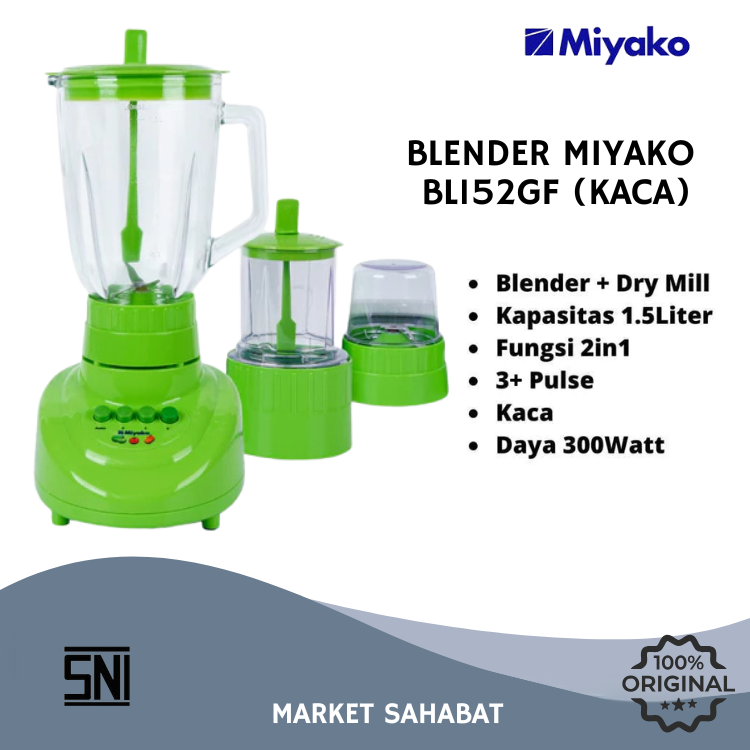 BLENDER MIYAKO PLASTIK KACA 3 IN 1 BL102 BL152 CHOPPER 2 IN 1 1 LITER 1.5 LITER MURAH TANPA DP ORIGINAL
