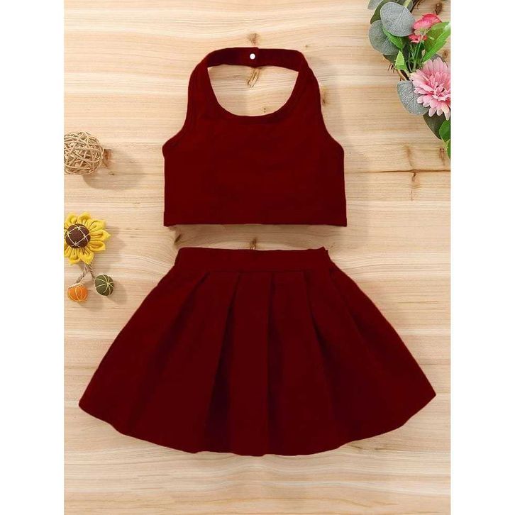 Setelan Anak Perempuan Motif Polos Crop+rok Flare Lipit 1 - 6 Tahun Best Seller Termurah Kids Store2