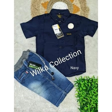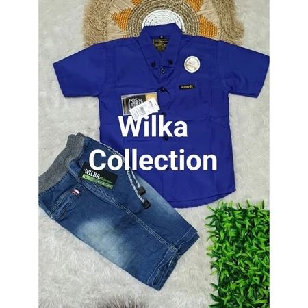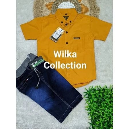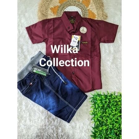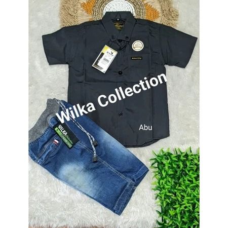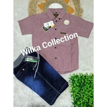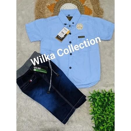 Setelan kemeja anak lengan pendek celana jeans pendek 1-12 tahun/setelan kemeja anak/setelan baju anak / Baju Kemeja Set