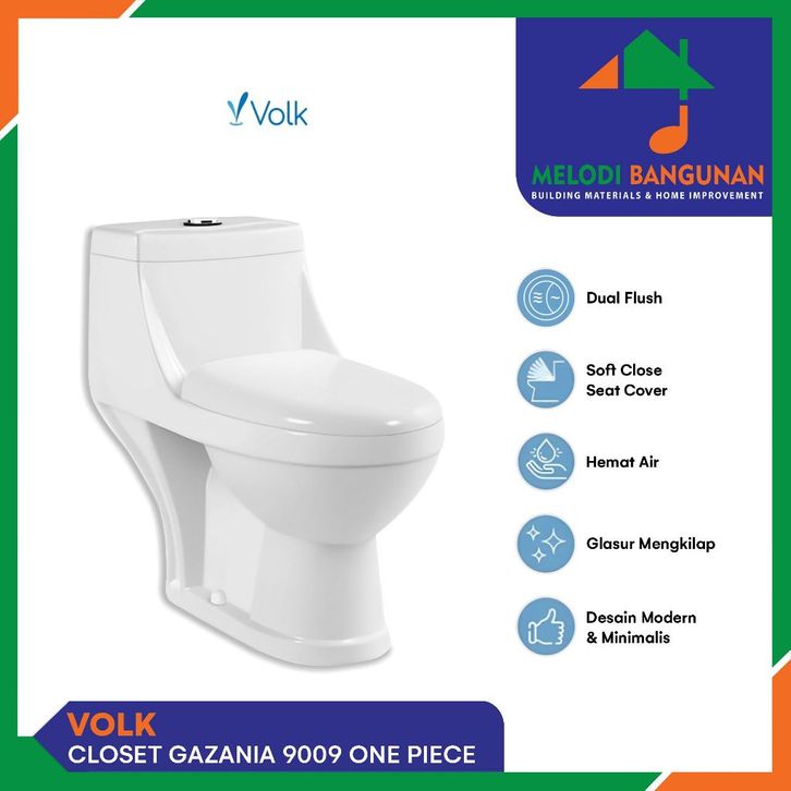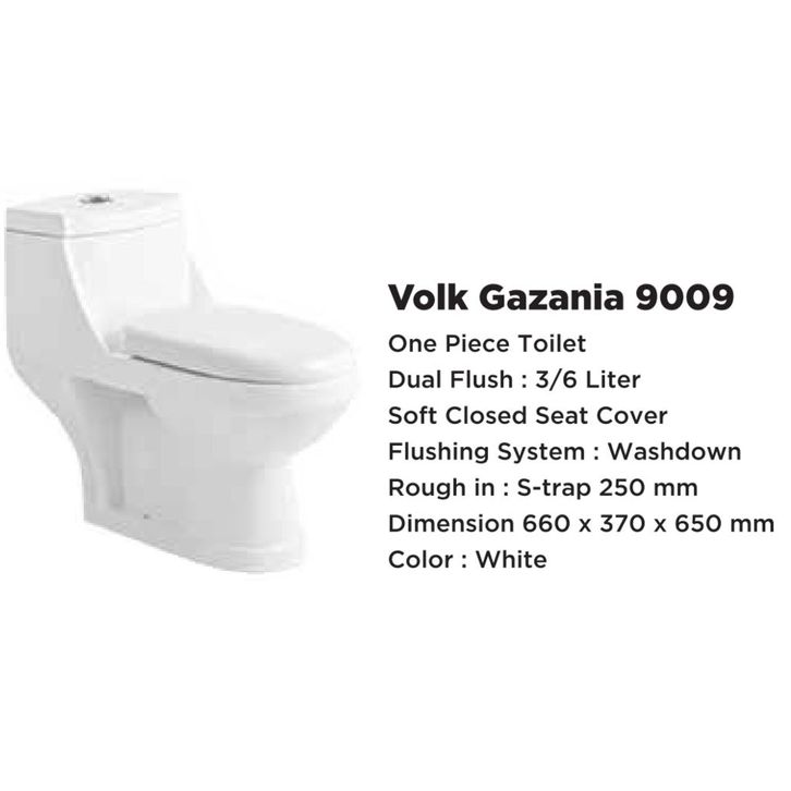 Volk - Closet Kloset Toilet Duduk Gazania 9009 One Piece Monoblok Kodok Dual Flush Soft Close Toto