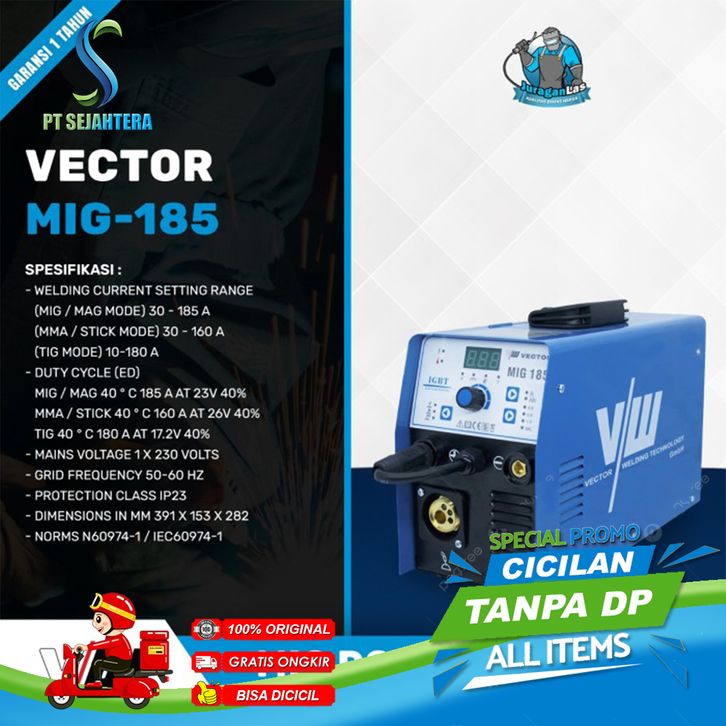 Vector Mig-185 Gasless DC Mig Welding Machine Mesin Las MIG Non Gas TERLARIS