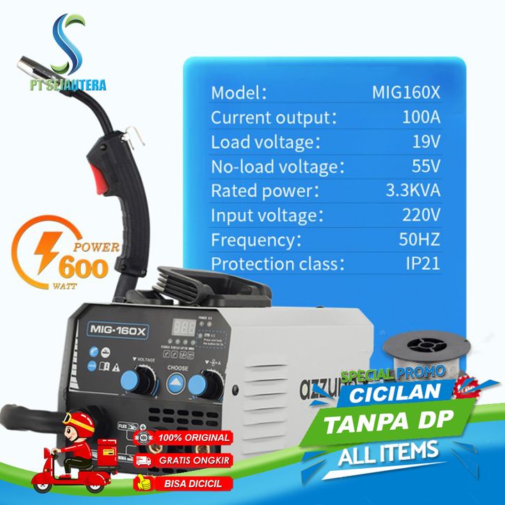 AZZUNO Mesin las mig tanpa gas 2 in 1 las listrik multipro travo mma - mma/mig 160F TERLARIS