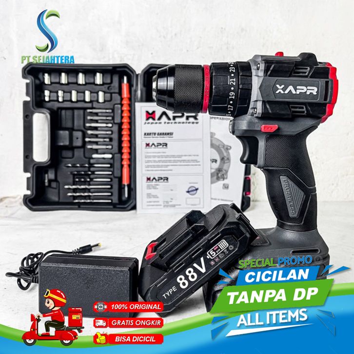 Bor Cordless APR AP34+ BRUSHLESS Impact Drill 13mm Keyless Mesin Bor 2Baterai Fullset TERLARIS