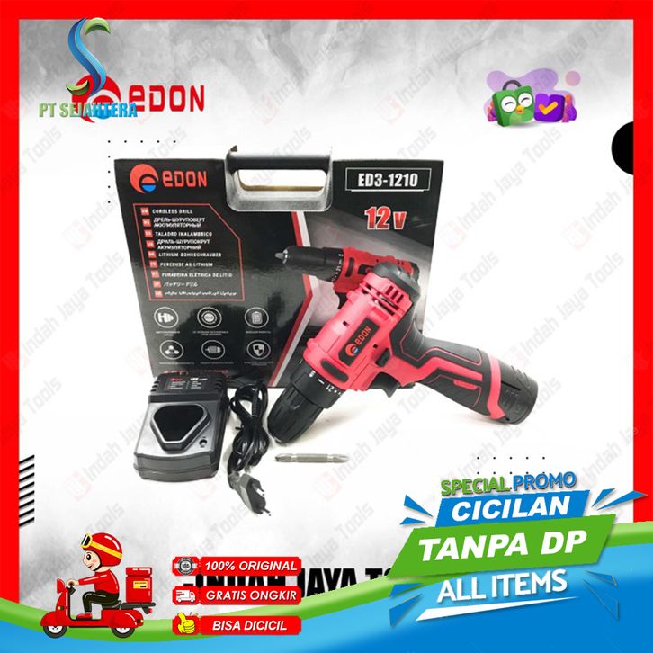 Mesin Bor 10 mm Cordless / Charger | Rechargeable 12V EDON TERLARIS