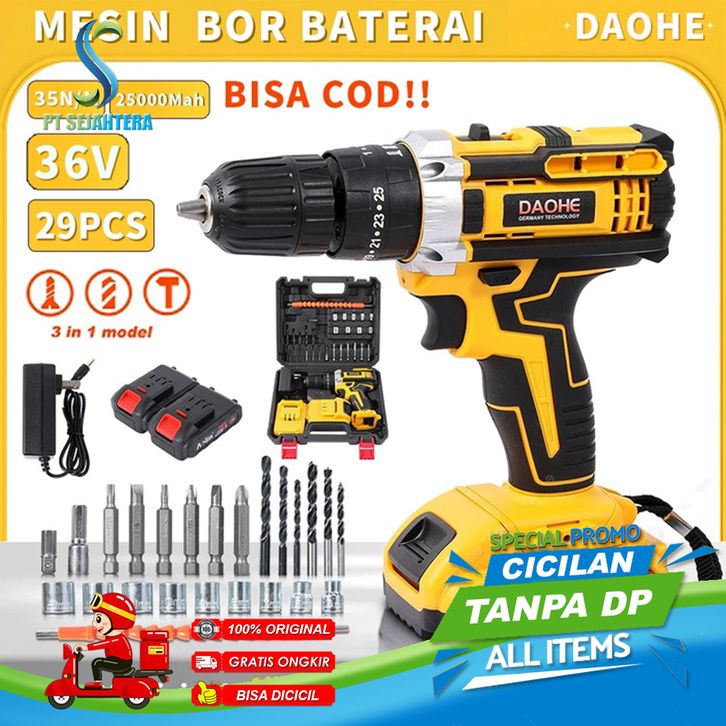 DAOHE 36VF Mesin bor baterai set bor cas 25+3 Cordless Impact Lengkap 2 Baterai Fullset Koper - 36V DAOHE TERLARIS