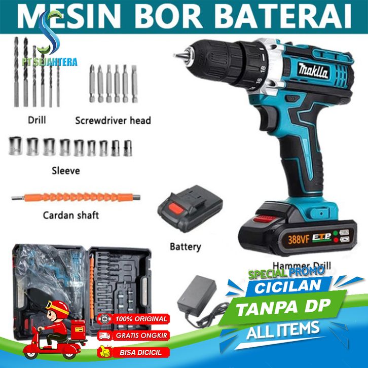 MAKlTA Mesin Bor Listrik Bor Baterai Bor Tanpa kabel 388V/766V Set Lengkap - 388V 1 Baterai TERLARIS