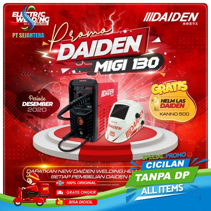 DAIDEN MIG 130 Mesin Las CO Flux Core Tanpa Gas CO2 - IGBT MAG Gasless - FREE HELM LAS TERLARIS