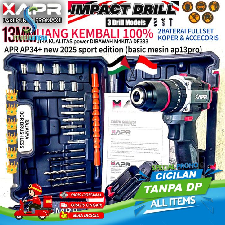 APR RAJA BOR IMPACT DRILL BRUSHLESS TYPE AP34+ 13MM KEYLESS AUTO LOCK 2BATERAI LXT 88V MESIN BOR TERLARIS