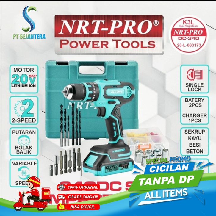 NRT-PRO DC340 Bor Cordless Drill Baterai Tangan Charger Cas 20 V Mesin TERLARIS