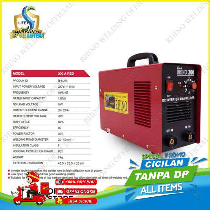 MESIN LAS LISTRIK MESIN LAS TRAVO LAS INVERTER RHINO MMA 200A 200 A - TanpaBubleWrap TERLARIS
