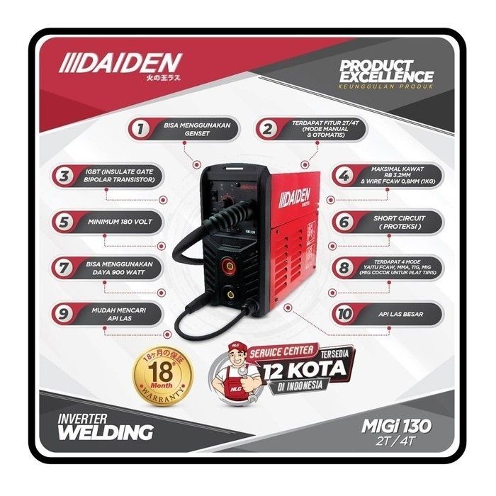 Daiden Mesin Las MIGI 130 Bonus Helm Las Kanno 500 - PAKET 1 TERLARIS