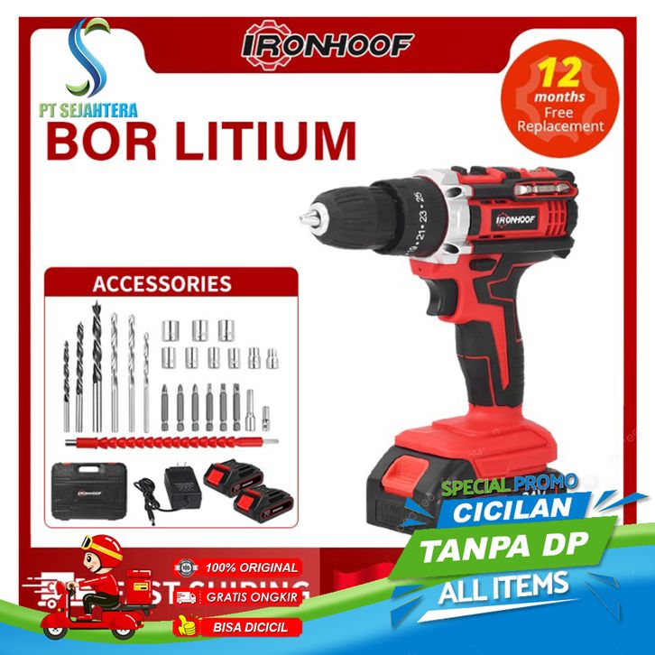 IRONHOOF Mesin Bor 3 in 1 Electric Drill 12V/24V Cordless Drill - 12V 1 Baterai TERLARIS