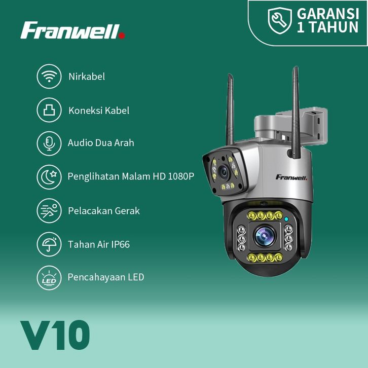 Franwell V10 Kamera CCTV WiFi Outdoor Dual Lensa 1080P | Night Vision | Tahan Air | Audio 2 Arah