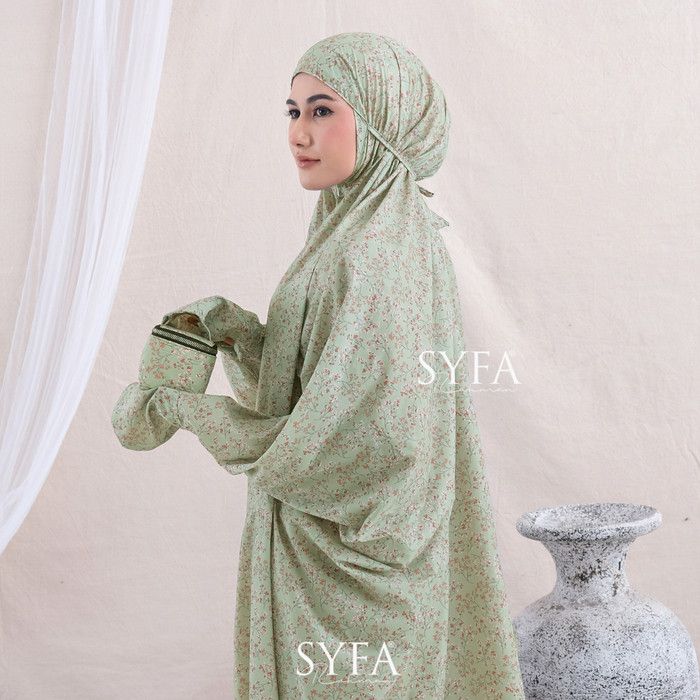 PROMO SYFA RAHMAN - MUKENA MINI TRAVELING TERUSAN MOTIF PARASUT KOREA - LUNA MATCHA