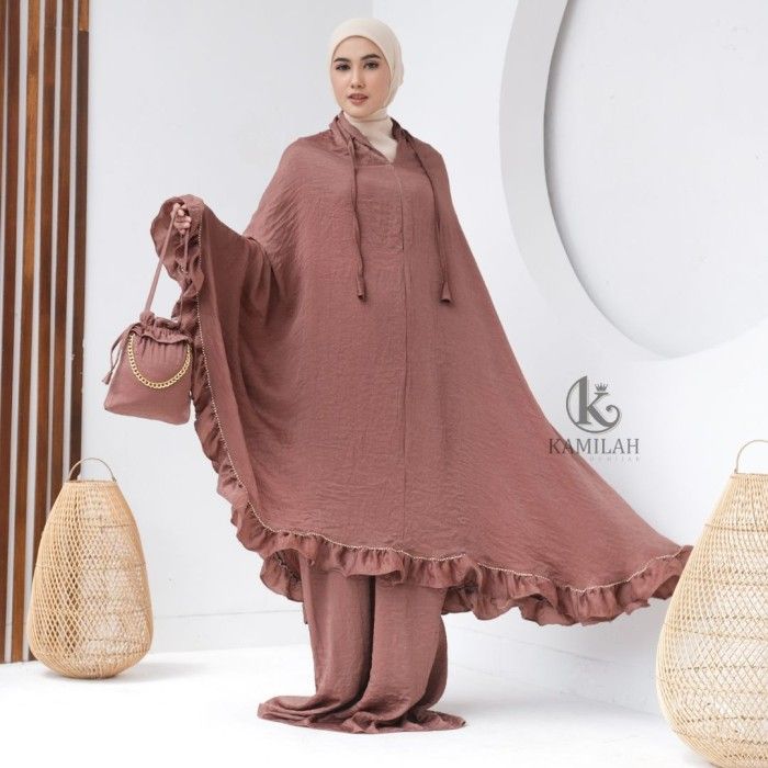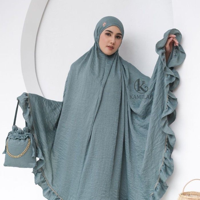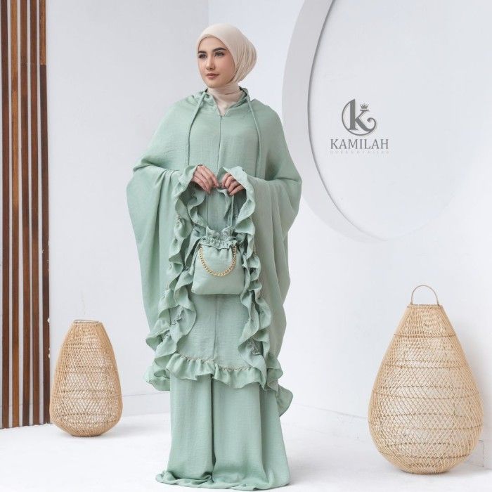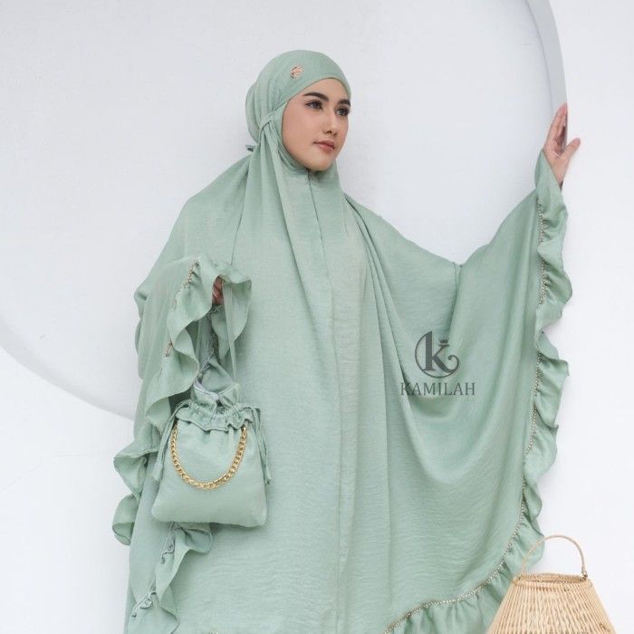 PROMO KAMILAH - MUKENA DEWASA LAYSHA SANTORINI SILK RAMPEL 2IN1 JUMBO MEWAH - GREENTEA