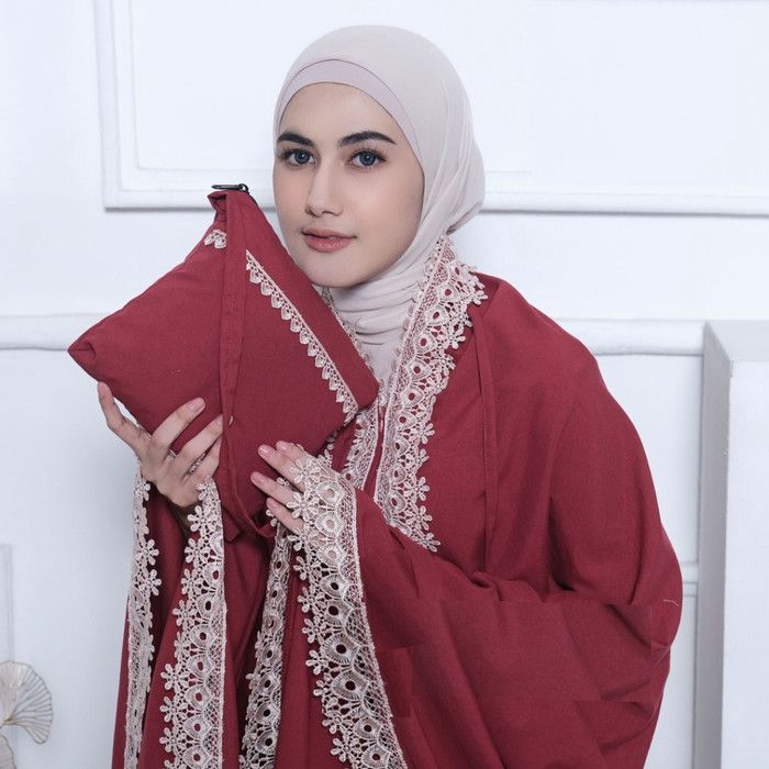 PROMO MUKENA DEWASA 2 IN 1 RETSLETING KATUN RENDA GIPER ADEM INARA SERIES - MARUN