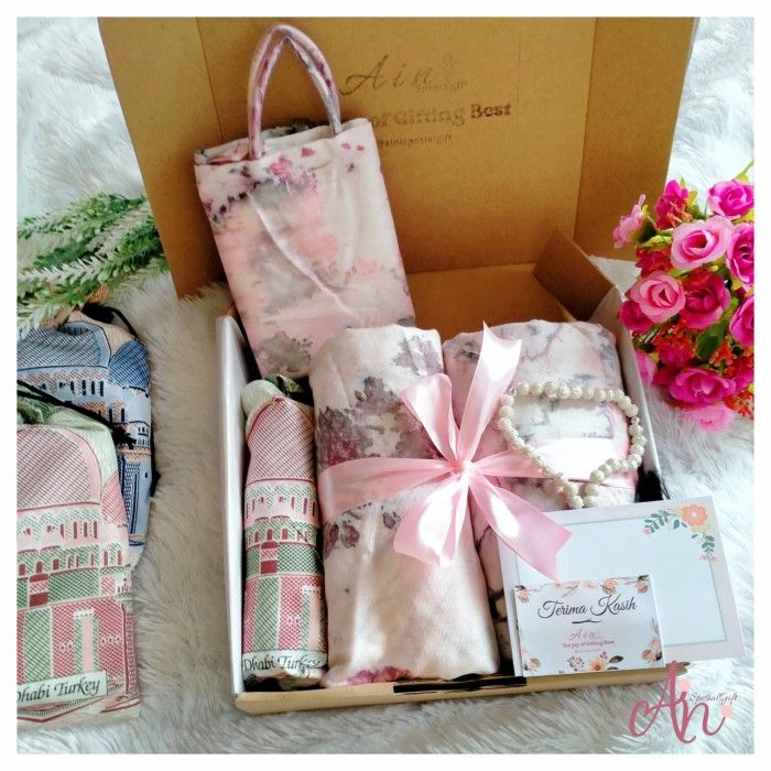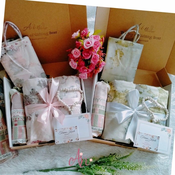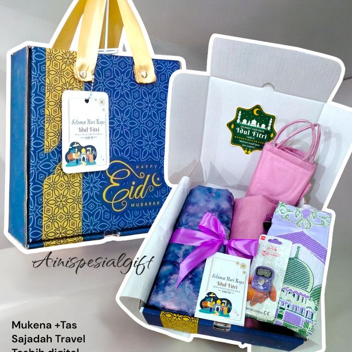 PROMO HAMPERS MUKENA SAJADAH TASBIH KADO HADIAH PAKET UKHTI - LAVENDER, BOX HANDLE