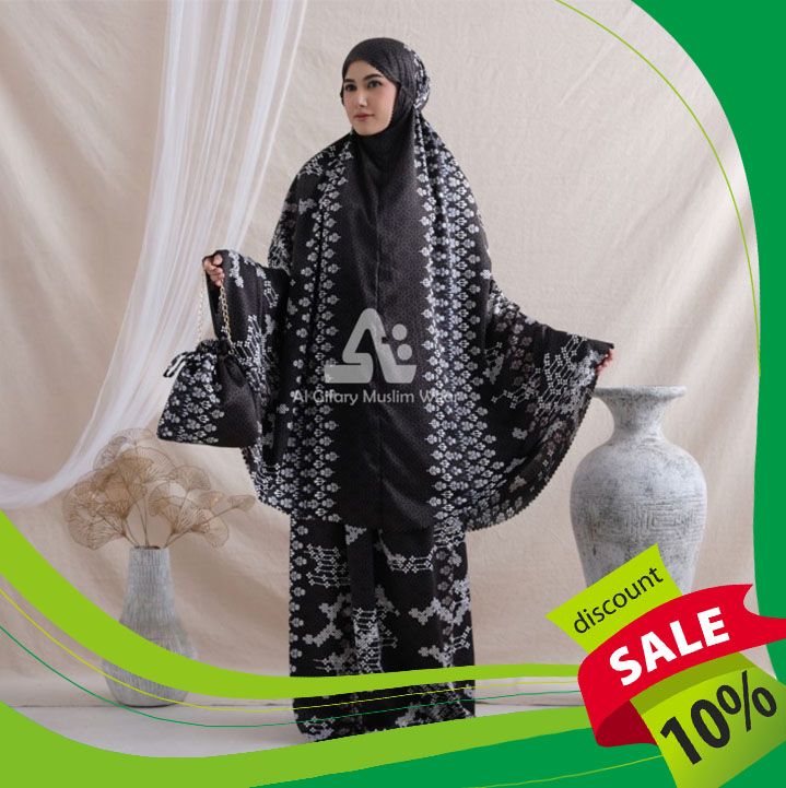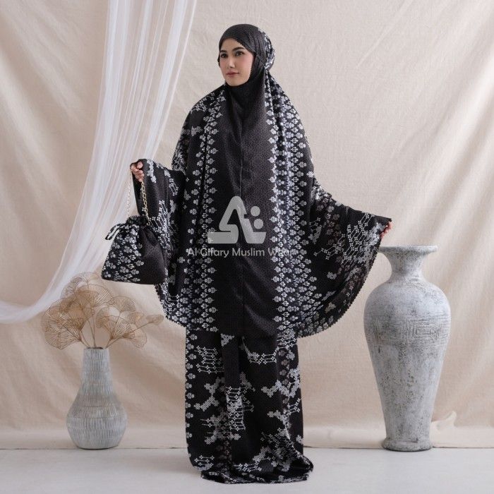 PROMO MUKENA DEWASA SILKY 2IN1 DAILY PREMIUM PRINTING MOTIF MEWAH - MIDNIGHT