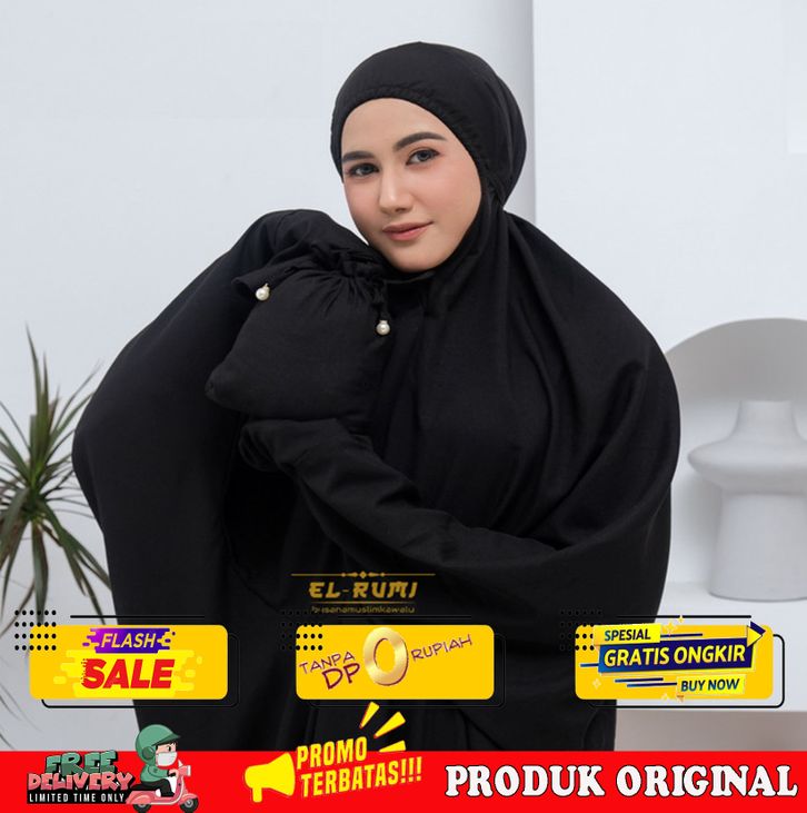 PROMO MUKENA TERUSAN DEWASA POLOS KATUN PREMIUM - HITAM