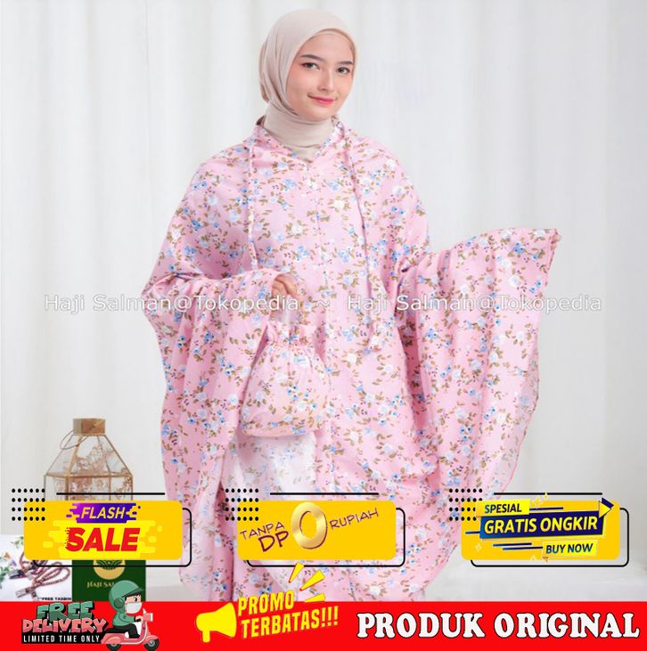 PROMO HAJI.SALMAN MUKENA DEWASA RASYA TRAVELING 2 IN 1 KATUN MOTIF CANTIK - PINK
