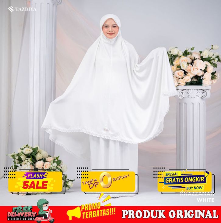 PROMO MUKENA TAZBIYA RENDA KHAZZANAH WHITE ALLSIZE - KHAZ WHITE