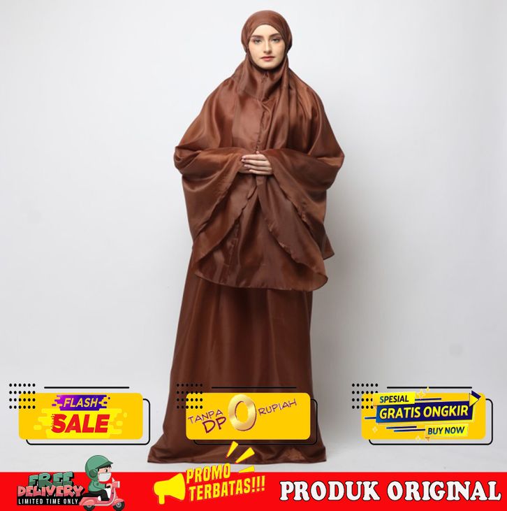 PROMO MUKENA TRAVELING MINI TERKECIL - PETUNIA (CASE POLOS) ATAS BAWAH - BROWN