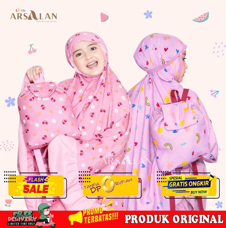 PROMO MUKENA ANAK RAYON TAS RANSEL GENDONG CHERRY PELANGI USIA 2 - 12 TAHUN - CHERRY CREAM, M