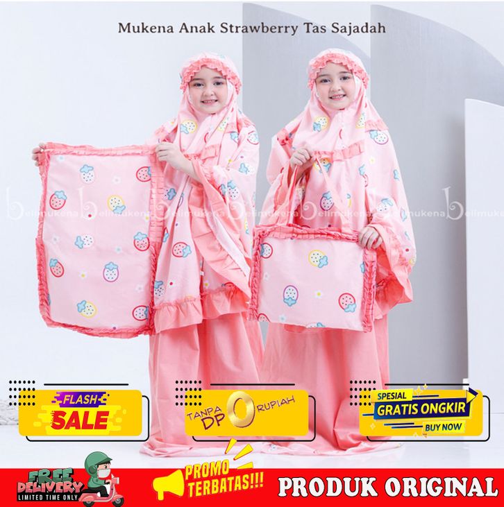 PROMO MUKENA ANAK KATUN STRAWBERRY SALEM ( TAS SAJADAH ) - XS