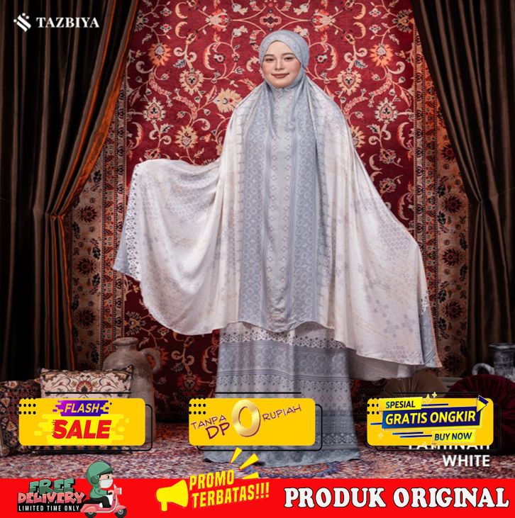 PROMO MUKENA TAZBIYA FATHINAH SERIES I MUKENA RAYON SATIN 2IN1 DEWASA - WHITE