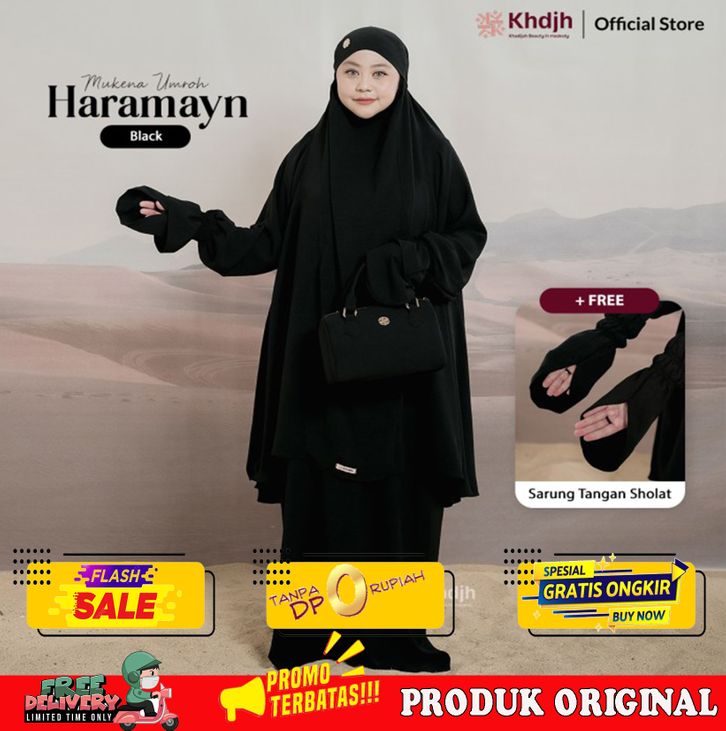 PROMO KHADIJAHLABEL MUKENA DEWASA JUMBO HAJI DAN UMROH TERBARU HARAMAYN - BLACK