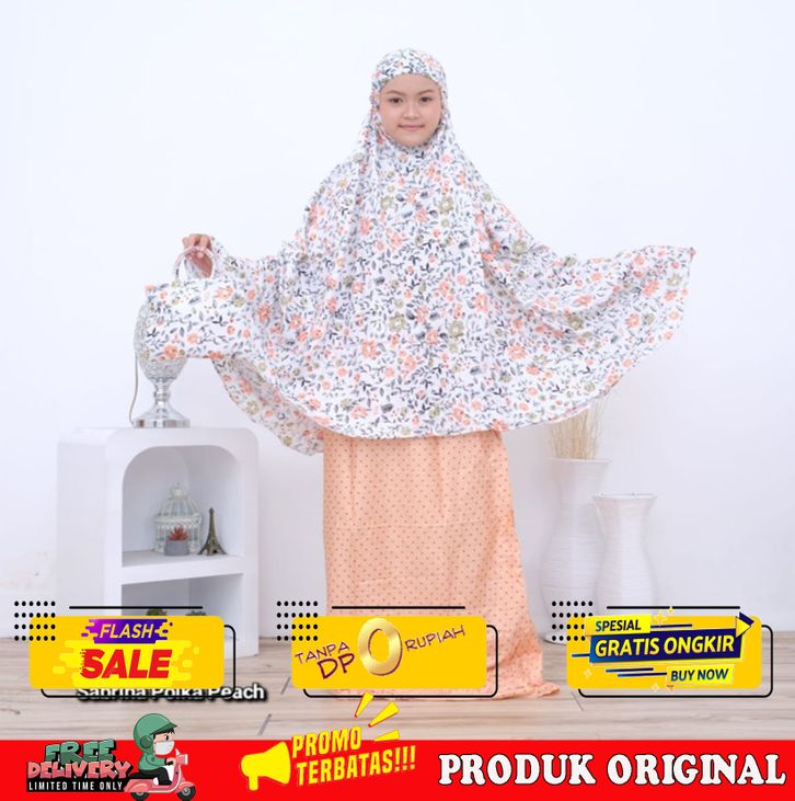 PROMO 7-12 TAHUN MUKENA ANAK TANGGUNG RAYON SUPER MURAH - A.SABRINA PEACH