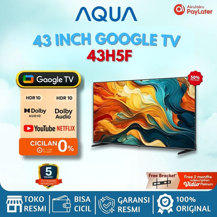 AQUA Smart TV 43 inch AQT32K70M - Miracast - HD Ready - Auto Volume Leveler - USB Movie - Narrow Bezel 32 INCH 40 INCH