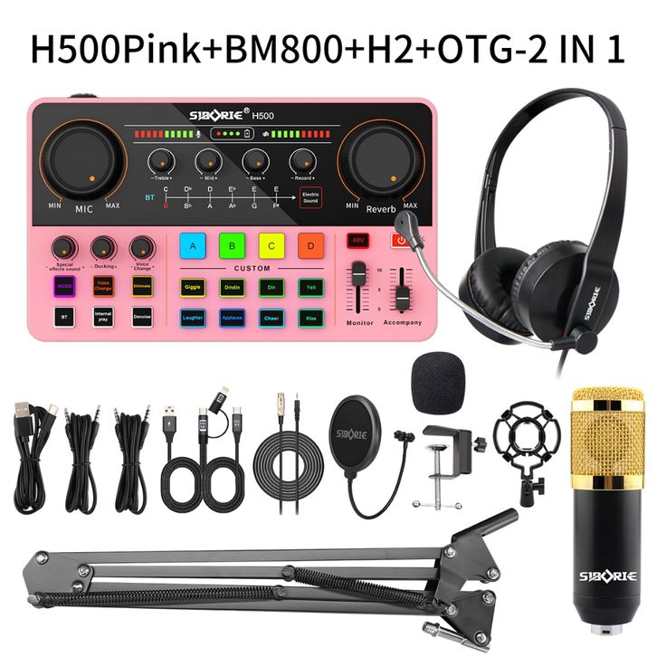 SIBORIE PAKET KOMPLIT SOUNDCARD H500+BM800 MIC+H2 HEADPHONE+OTG-2 IN 1 SET WITH KURUNG KANTILEVER MENDUKUNG