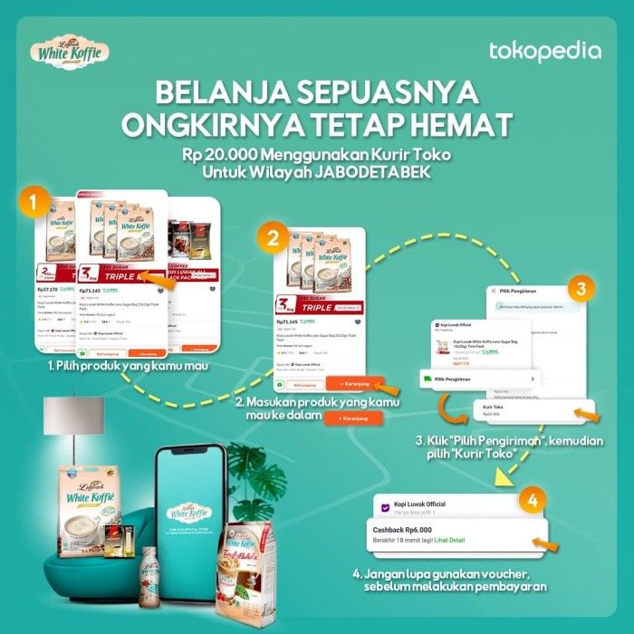 Kopi Luwak White Koffie Less Sugar Bag 10x20gr - 6 Pcs