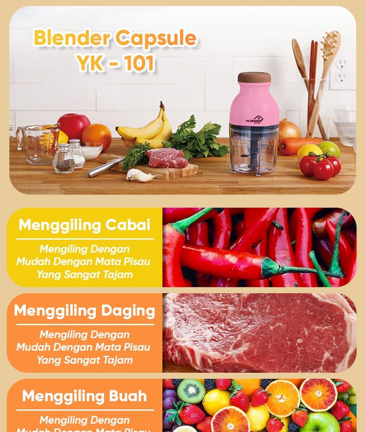 101 Blender / Penggiling daging sayur buah-buah meat mincer chopper kapsul mini YK DESIGN