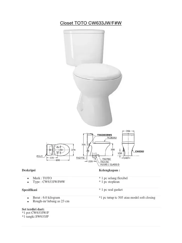 ( GRATIS PACKING KAYU ) Kloset Duduk Merk TOTO ORIGINAL /TOILET/ KLOSET MERK Europe Enchanting E1333Eco