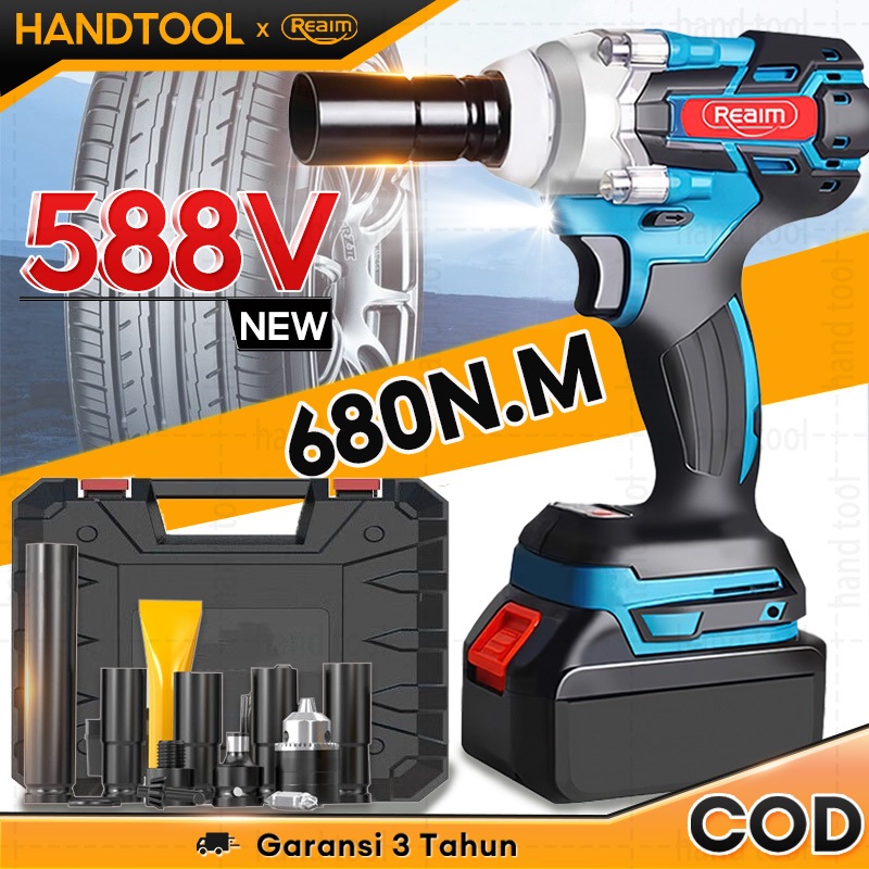 Bor Impact Wrench Reaim Cordless 388V 680Nm 2 Baterai Jumbo Multifungsi | Tekiro Makita Modern Listrik 1 Set Lengkap APR