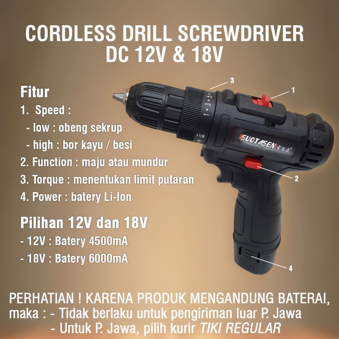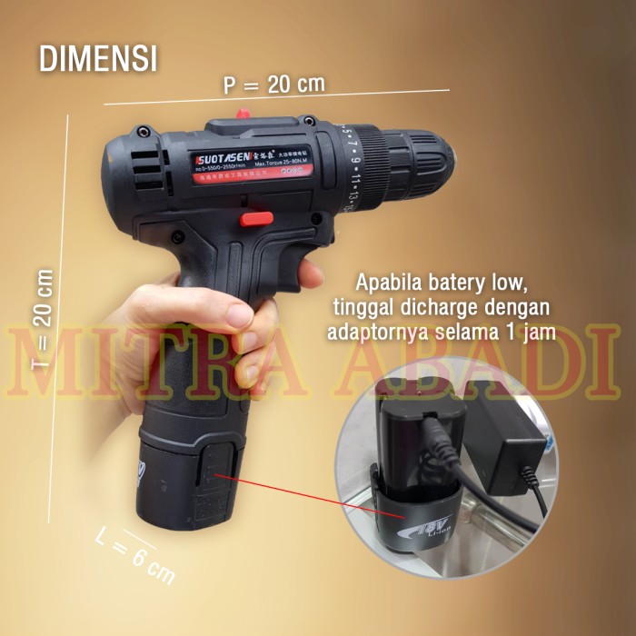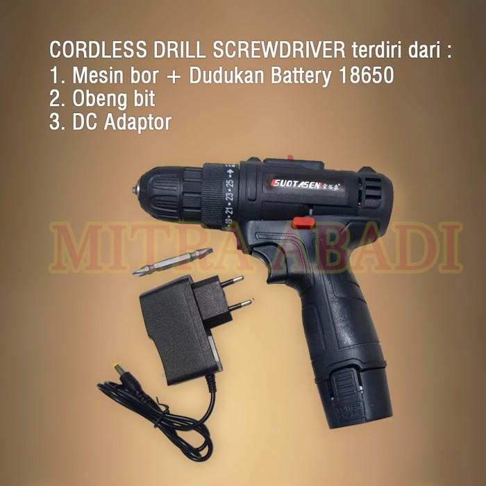 MESIN BOR TANGAN PORTABLE / CORDLESS DRILL SCREWDRIVER DC - 12V