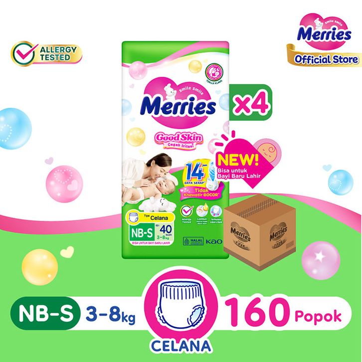 Pampers Merries Pants Good Skin NB-S 40 Popok Celana 1 Dus 4 Packs Harga Grosir Termurah