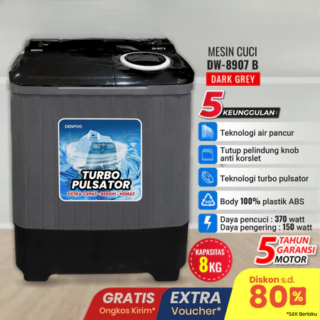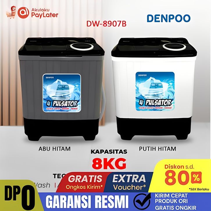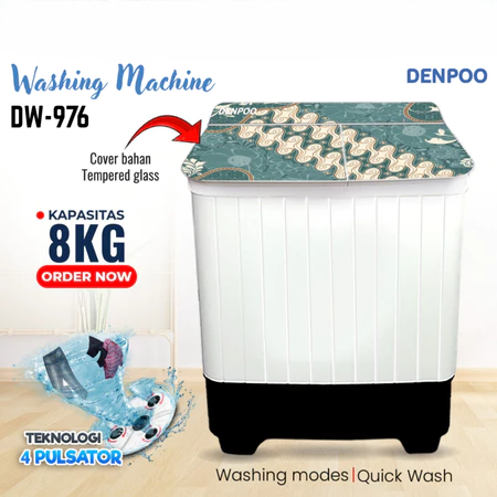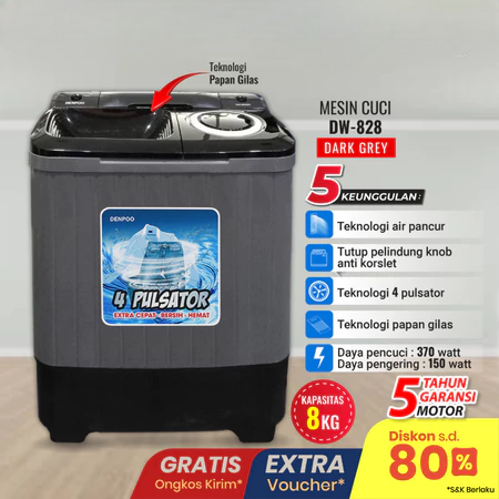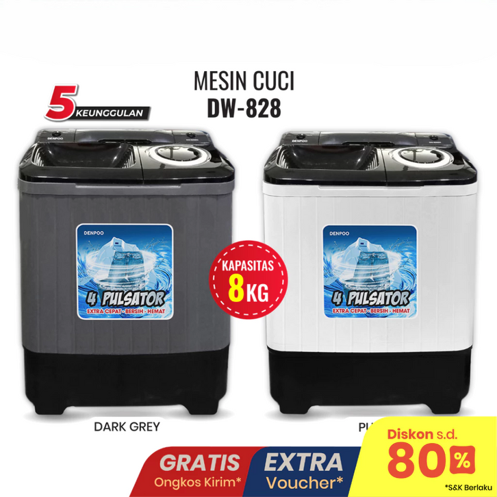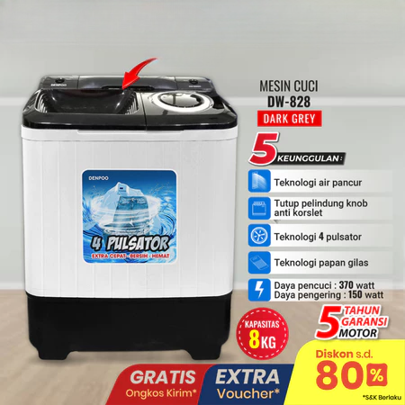 DENPO ORI Mesin Cuci Denpoo 2 Tabung 8Kg DW 828 4P Ukuran Besar Anti Bakteri Super Hemat Listrik