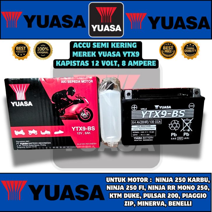 AKI MOTOR KAWASAKI NINJA 250 FI Z250 SL NINJA 250 MONO VERSYS 250 ZX250 ER6N YUASA YTX9 BS ORIGINAL