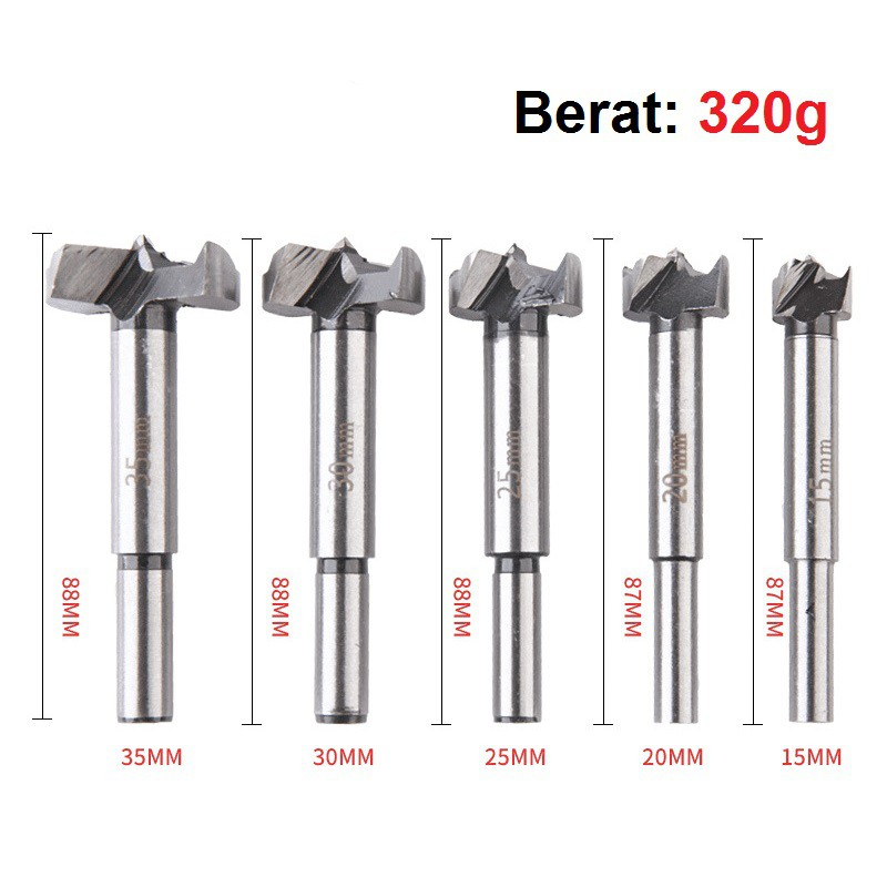 MATA BOR SET - MATA 5 PCS SET BOR FORSTNER BIT PELUBANG KAYU ENGSEL SENDOK SET ISI WOOD WOOD HOLE SAW