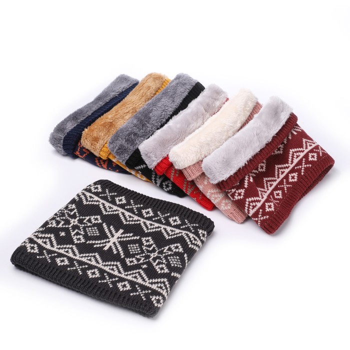 WINTER SYAL SHAW BUFF PRIA WANITA TEBAL RAJUT HANGAT NECK COVER DOUBLE LAYER POLOS DAN MOTIF MUSIM DINGIN BULU DIDALAM - KUNING MOTIF