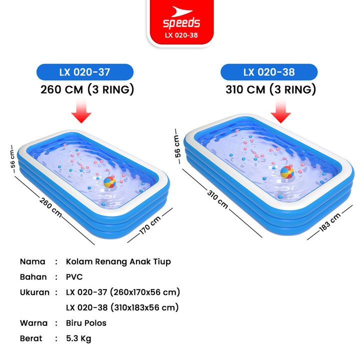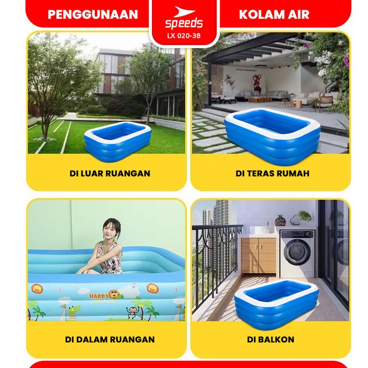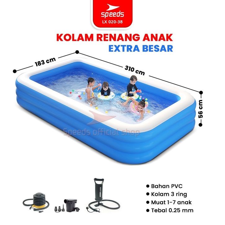 SPEEDS Kolam Renang Anak 310x183x56cm Ukuran Jumbo Kolam Renang Tiup Pompa Bahan Kuat Inflatable Swimming Pool For Kids