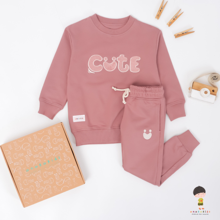 BEBE SHOP ONE SET ANAK SWEATER CREWNECK JOGGER ANAK DUSTY ROSE