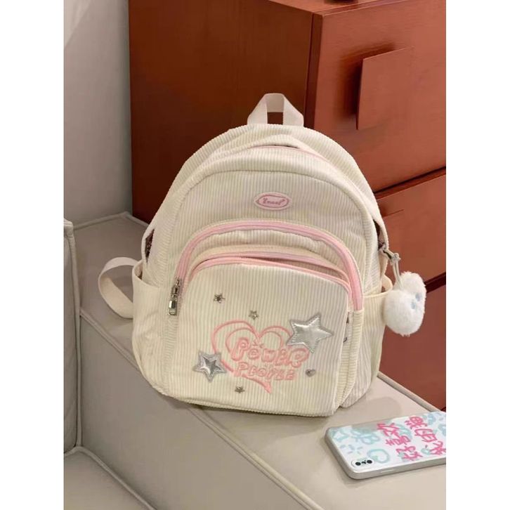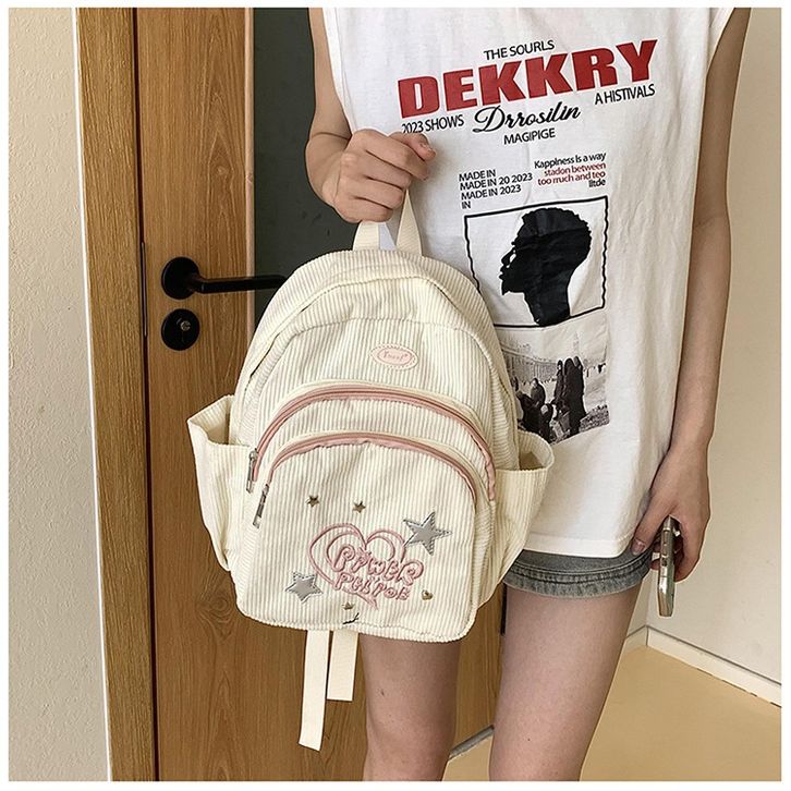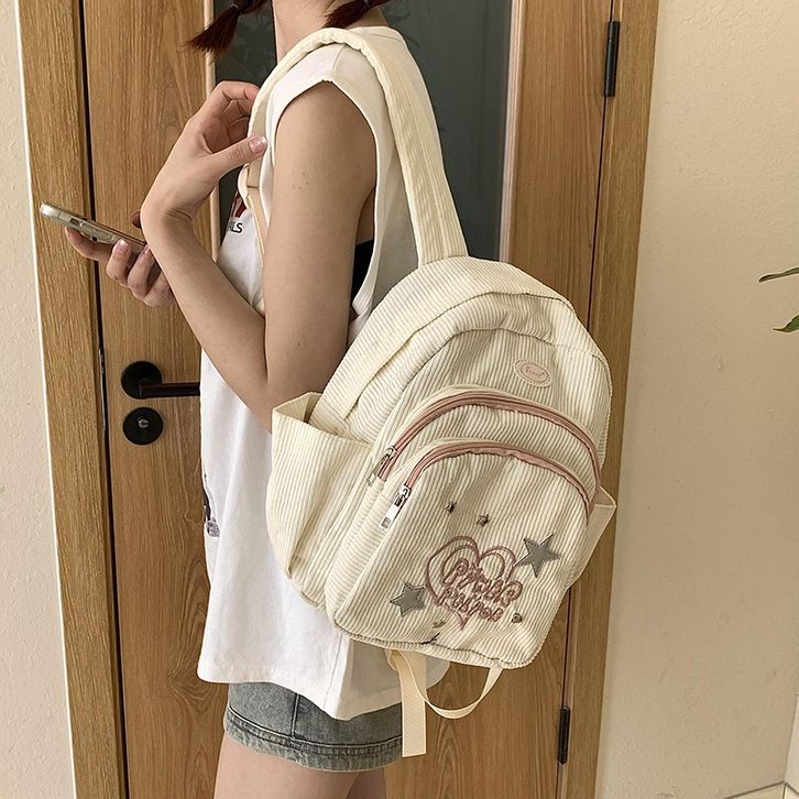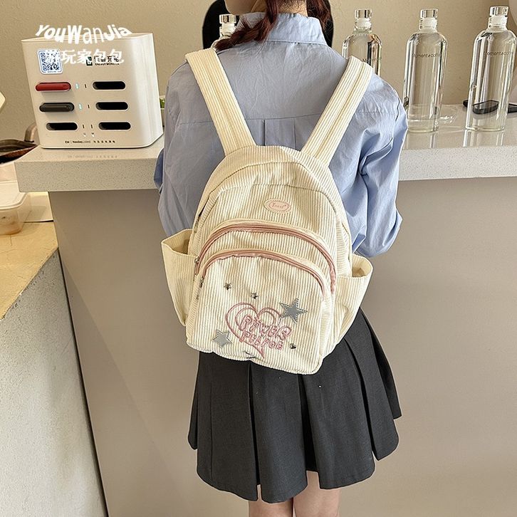 Tas Ransel Y2k Mini Tas corduroy Backpack Ransel Ins Gaya Hutan Baru Tas Sekolah Lucu Kecil Ringan Ceruk Perj