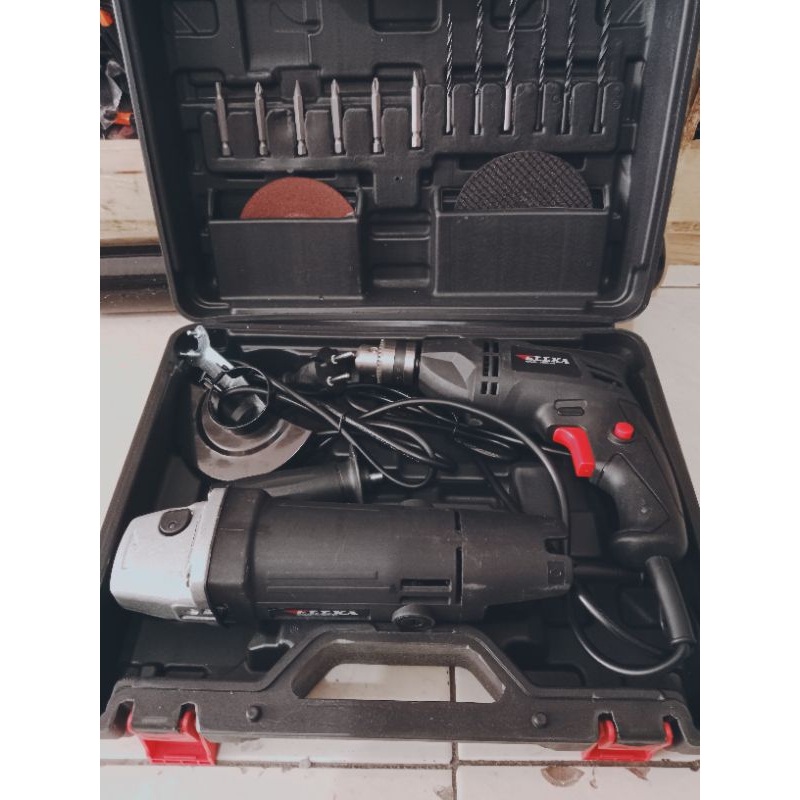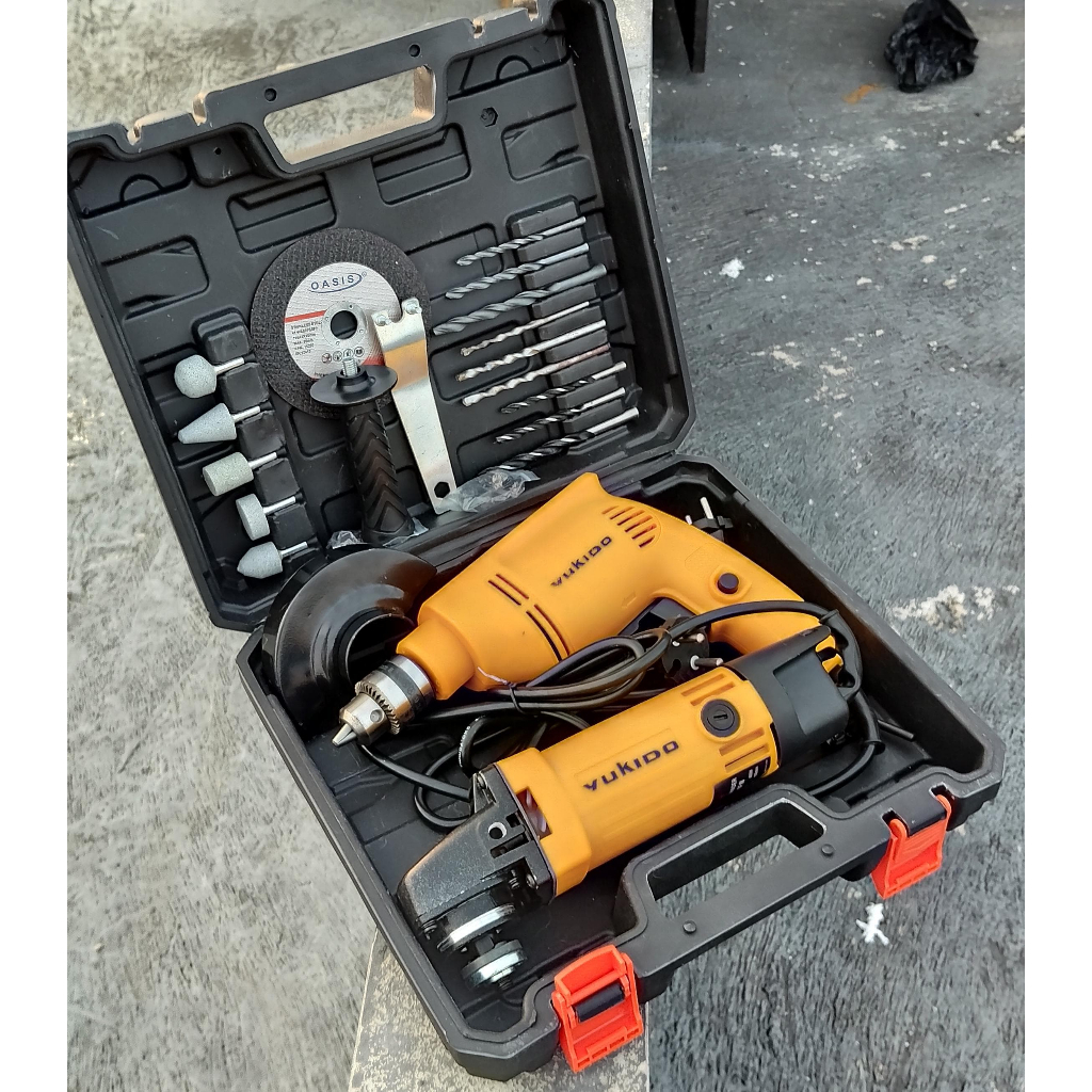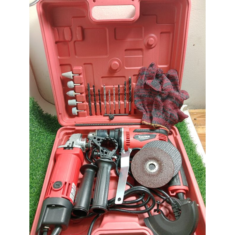 KUSUKA Bor + Gerinda Box!! Bor 13mm + Gerinda 4inch + Mata Bor Kayu+Mata Bor Beton+Batu Potong + Batu Poles Bor 10mm Bol