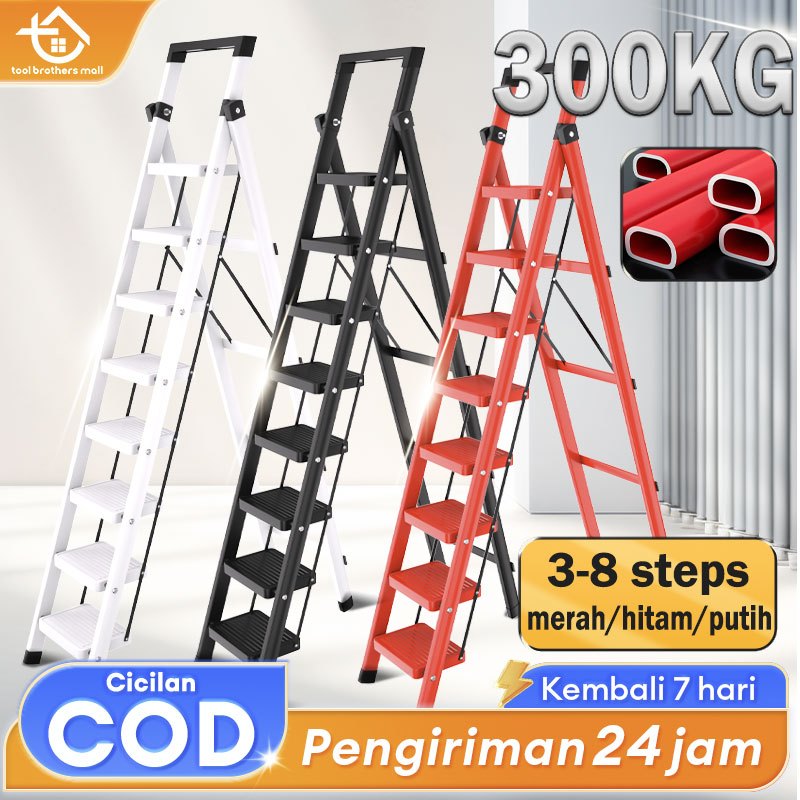 Reaim Tangga 3/4/5/6/7/8 Step Putih/merah/hitam Tangga Lipat Multifungsi Tangga Lipat Household Steel Ladder Tangga Lipa
