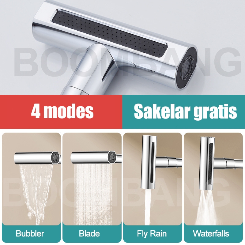 Kran Air Terjun 4 Mode/Kran Angsa Fleksibel/Kran Wastafel Cuci Piring/Kran Air 1/2 inci/Kran Shower